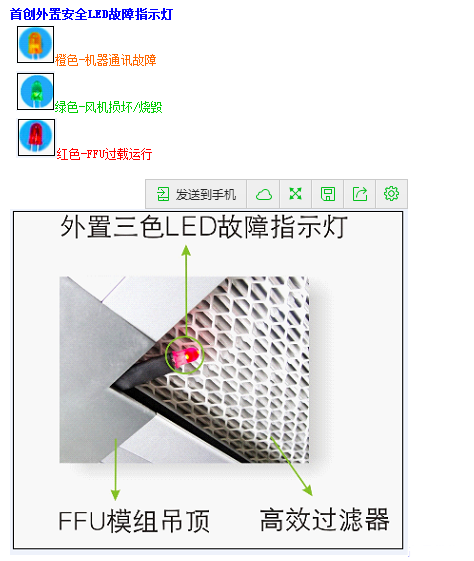 5.FFU采用獨(dú)特的風(fēng)道風(fēng)速均勻,整個(gè)出風(fēng)面以0.45M/S風(fēng)速均勻送出。