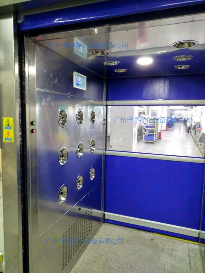 4、全自動紅外感應吹淋,“歐姆龍”紅外感應器,正泰中間繼電器,單向通道貨淋室,從非潔凈區進入,關門后紅外線感應有人就吹淋,吹淋時雙門自動鎖閉,吹淋后入門鎖閉,由潔凈區出去時經過貨淋室不吹淋以節省能源;
