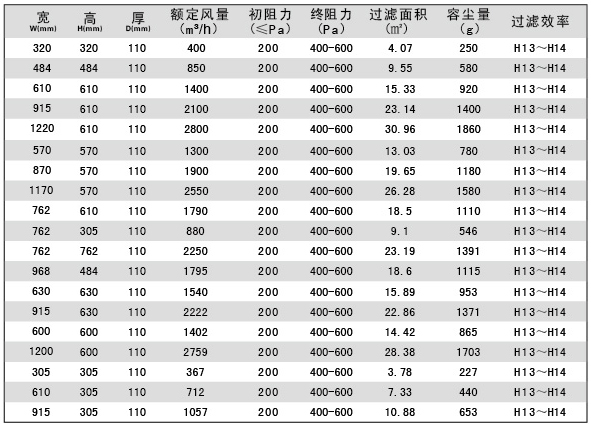 6、過濾效率:H13:99.97-99.99%@0.3μm H14:99.995-99.999%@0.3μm 。