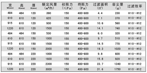 用戶選購指南-有隔板亞高效過濾器參數
